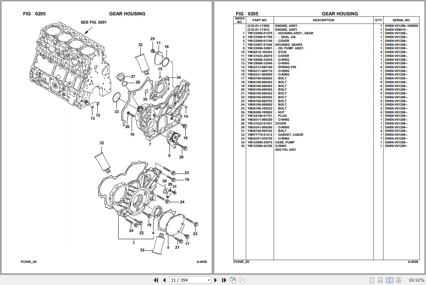 Komatsu PC95R-2 21D5220114 Up Spare Parts Catalog