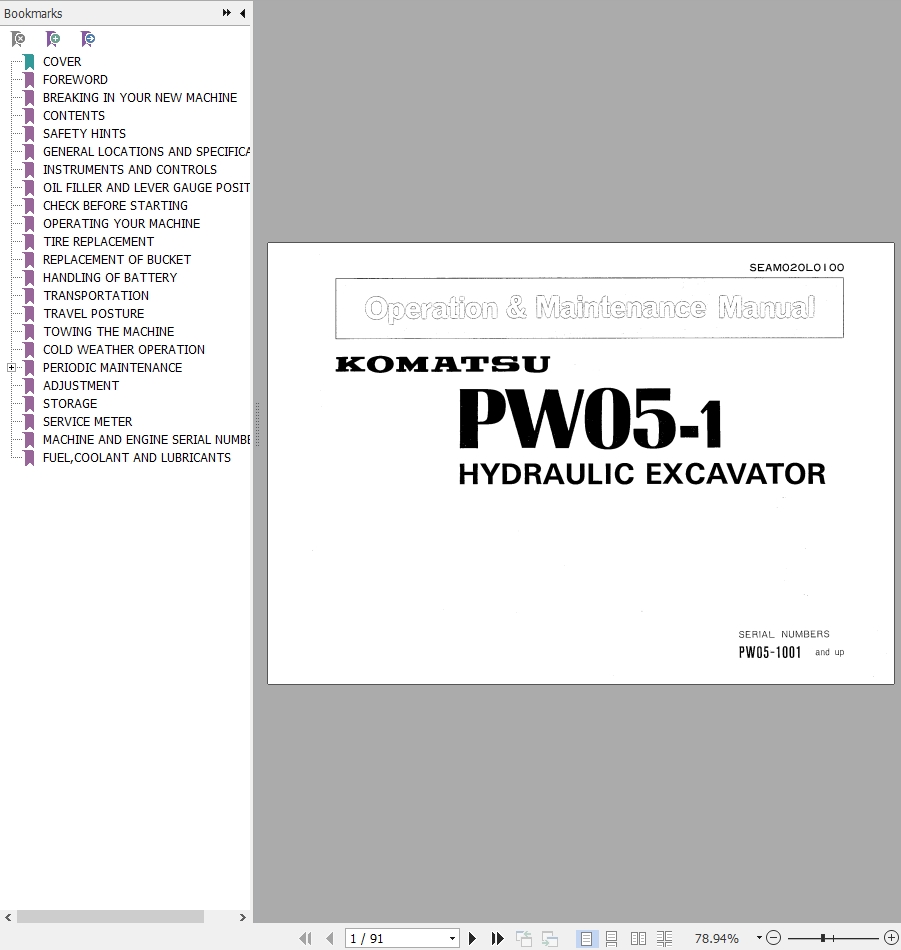 Komatsu PW05-1 Operation & Maintenance Manual SEAM020L0100