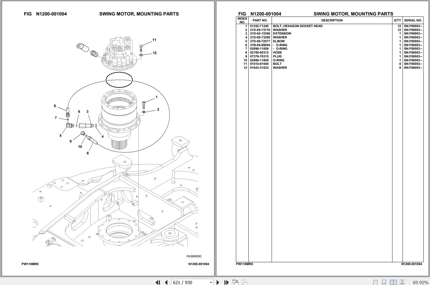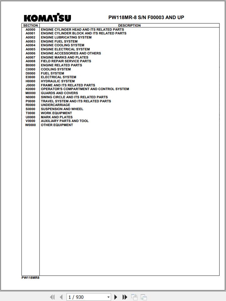 Komatsu PW118MR-8 F00003 And Up Spare Parts Catalog