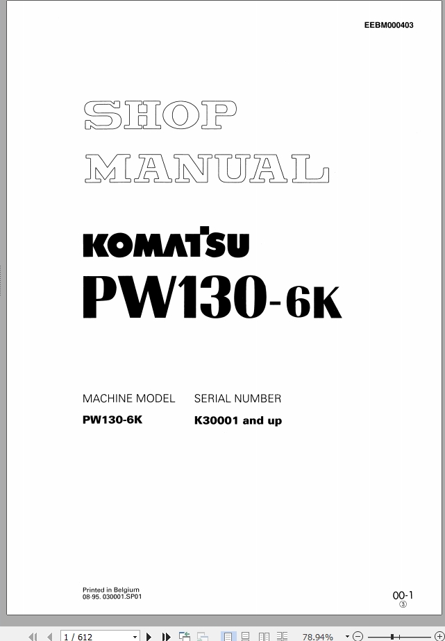 The Bookmarks of Komatsu PW130-6K Wheeled Excavator Shop Manual: