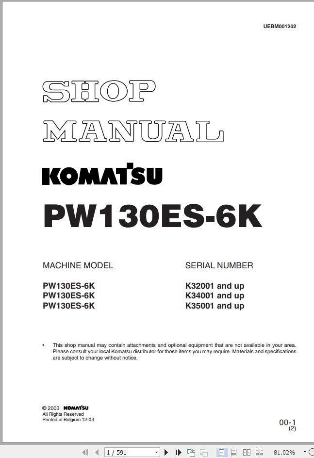 Komatsu PW130ES-6K Shop Manual UEBM001202
