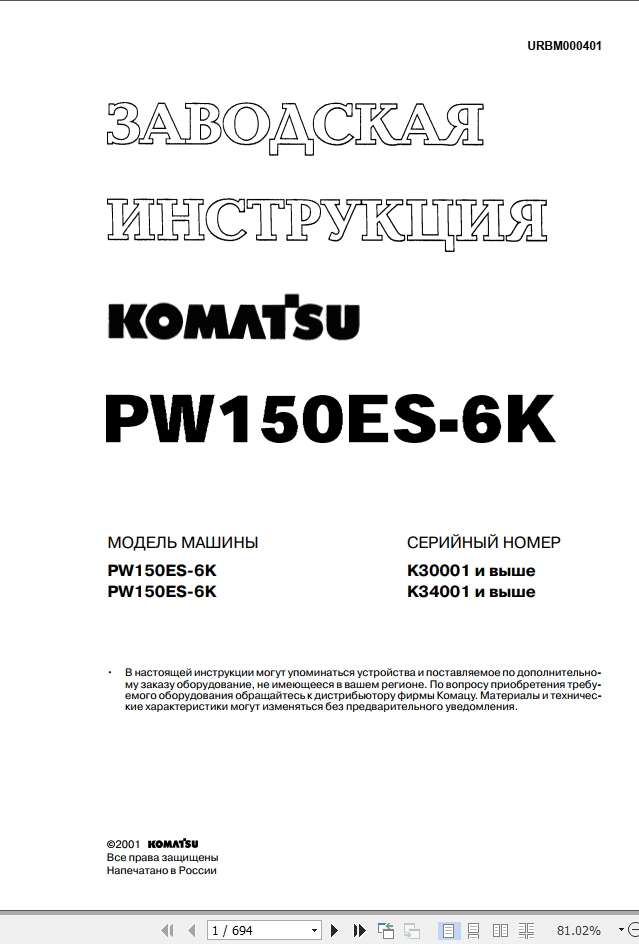 Komatsu PW150ES-6K Service Manual URBM000401 Russian