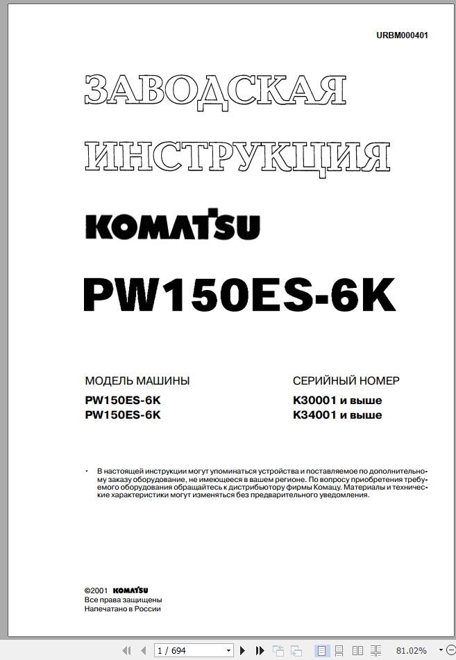 Komatsu PW150ES-6K Shop Manual URBM000401
