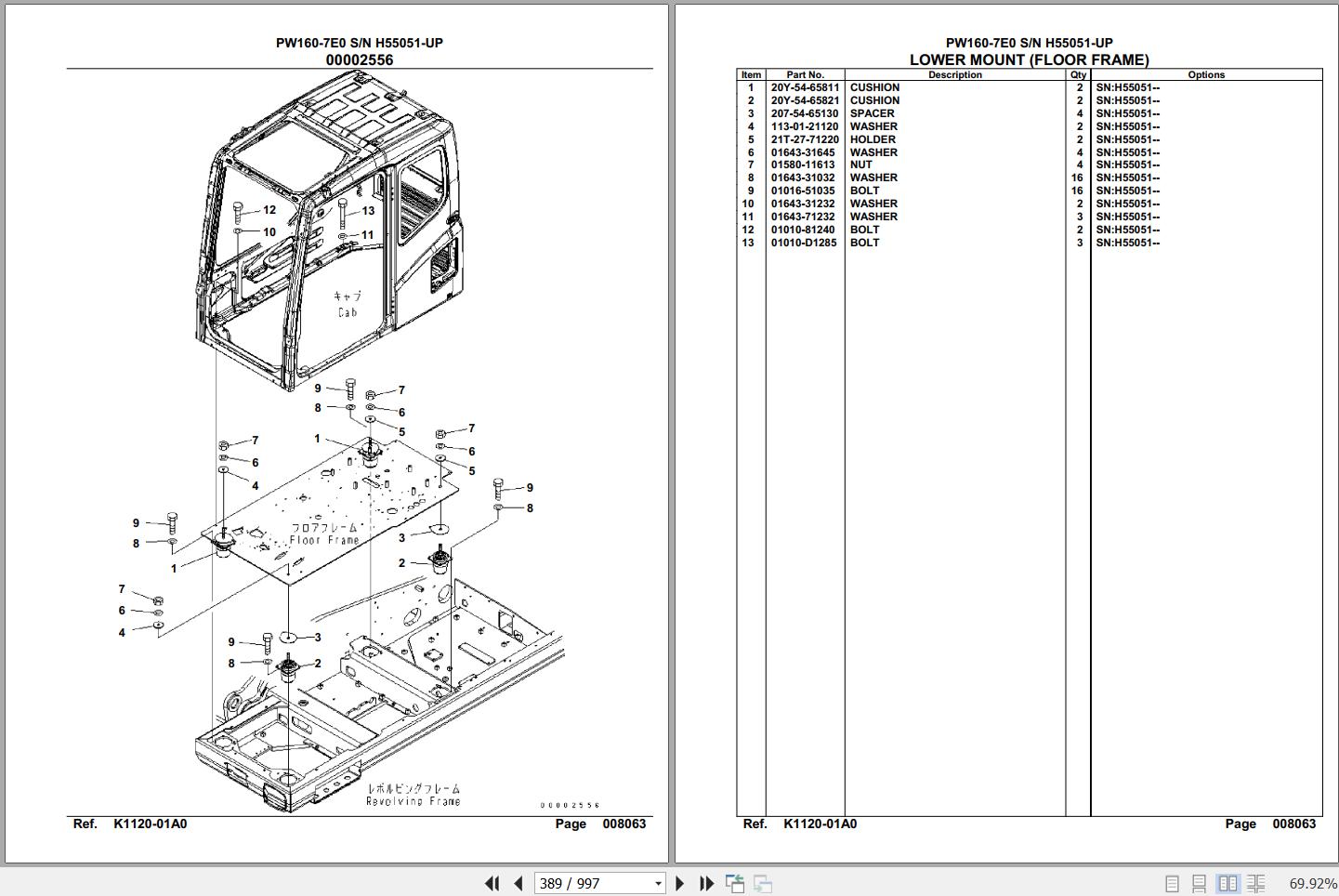 Komatsu PW160-7E0 H55051 UP Spare Parts Catalog