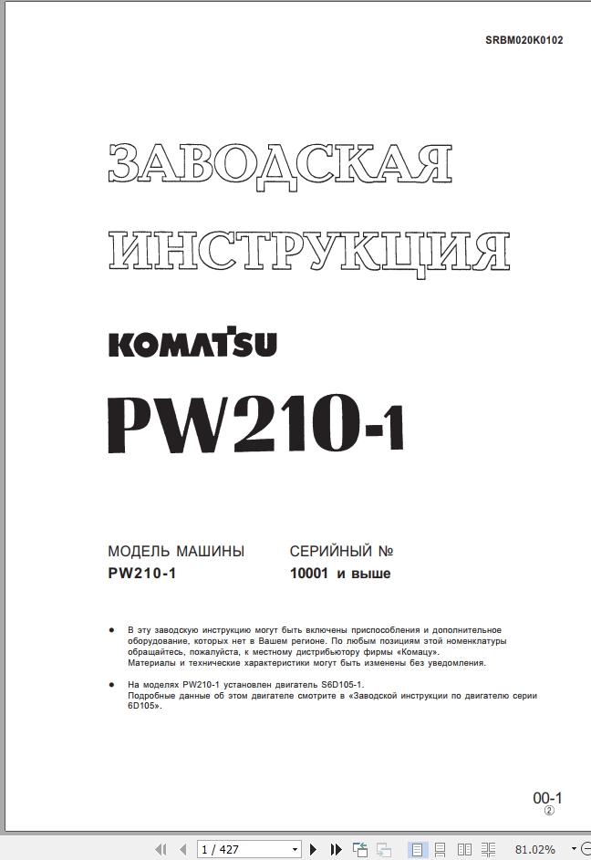 Komatsu PW210-1 Shop Manual SRBM020K0102