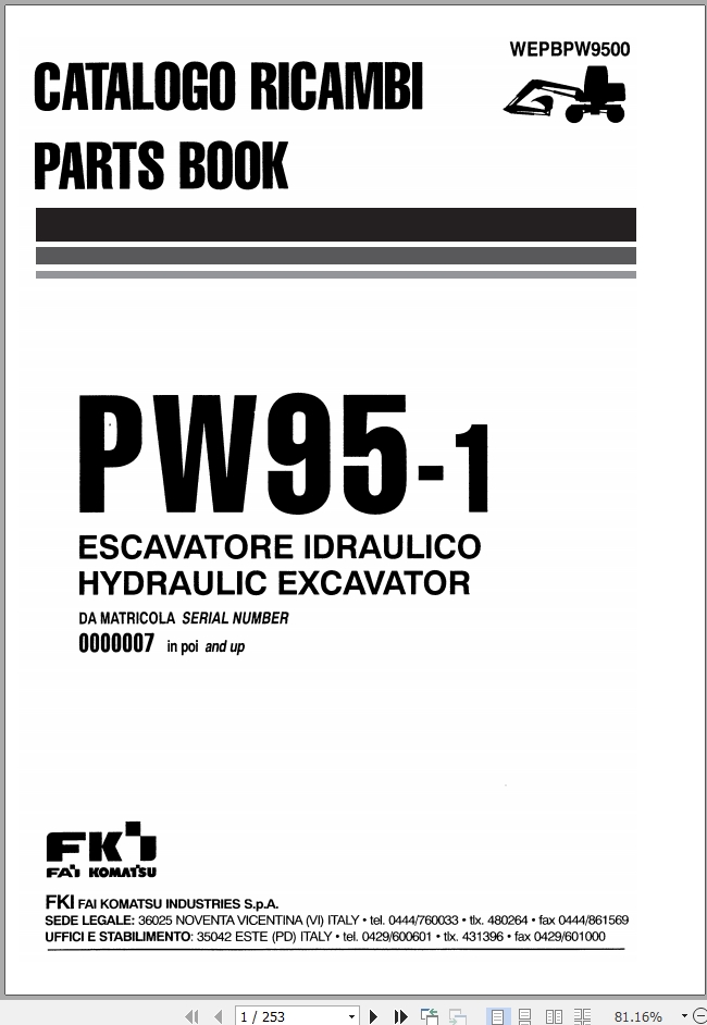 Komatsu PW95-1 Part Book WEPBPW9500