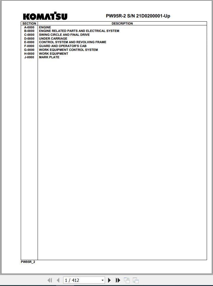 Komatsu PW95R-2 21D0200001 Up Spare Parts Catalog