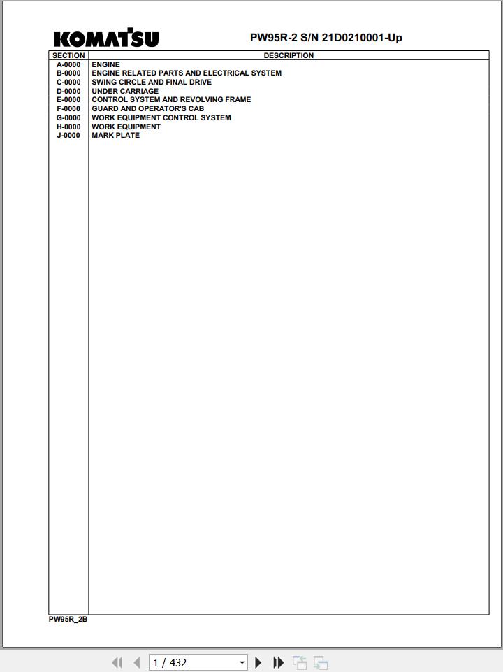 Komatsu PW95R-2 21D0210001 Up Spare Parts Catalog