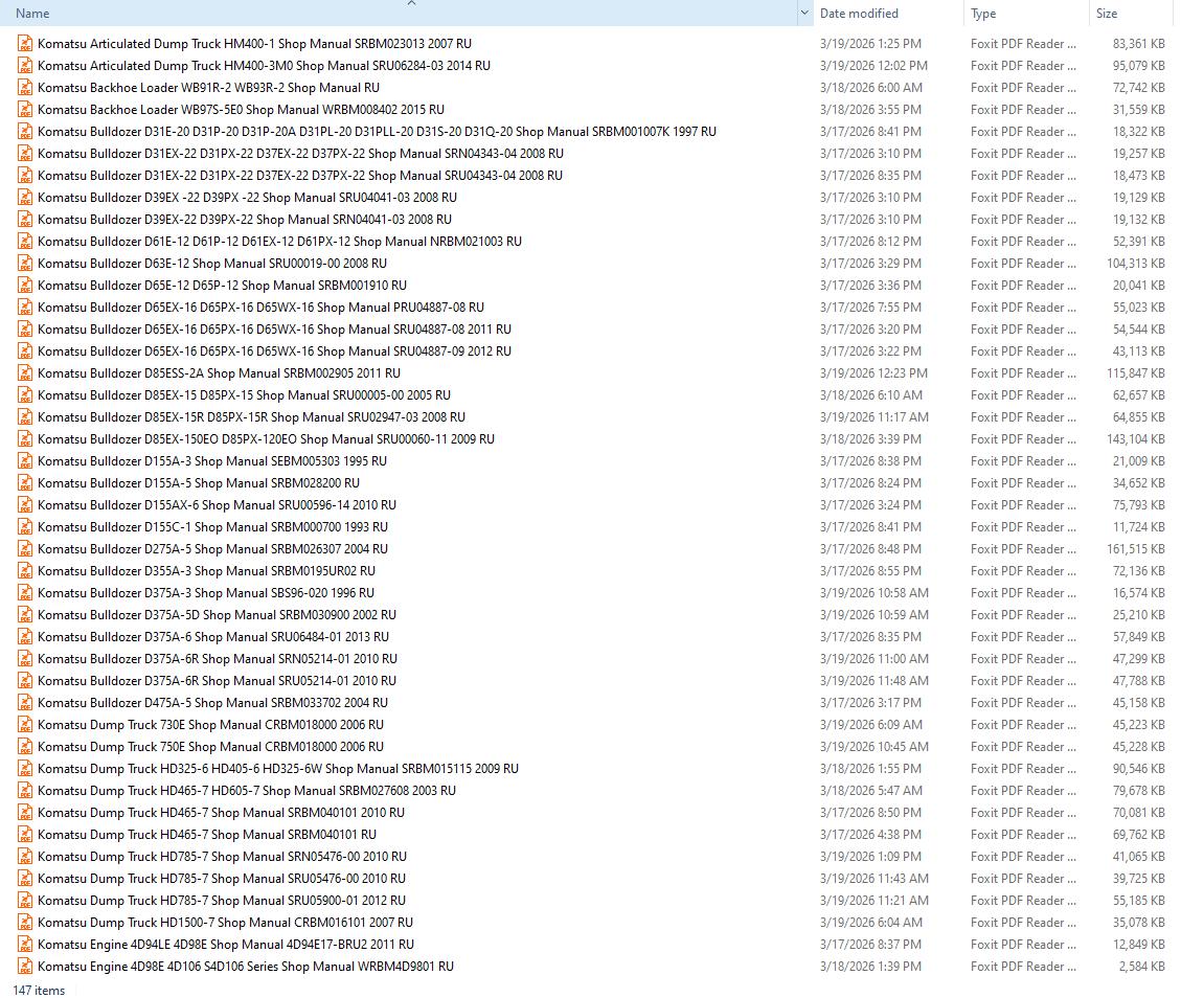 Komatsu Dump Truck HD465-7 Shop Manual SRBM040101 RU PDF