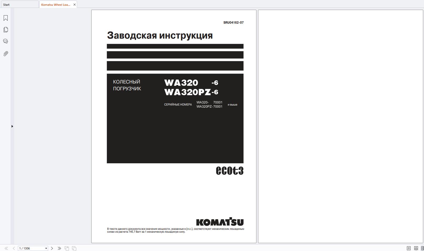 Komatsu Wheel Loader WA320-6 WA320PZ-6 Shop Manual SRU04162-07 2009 RU PDF
