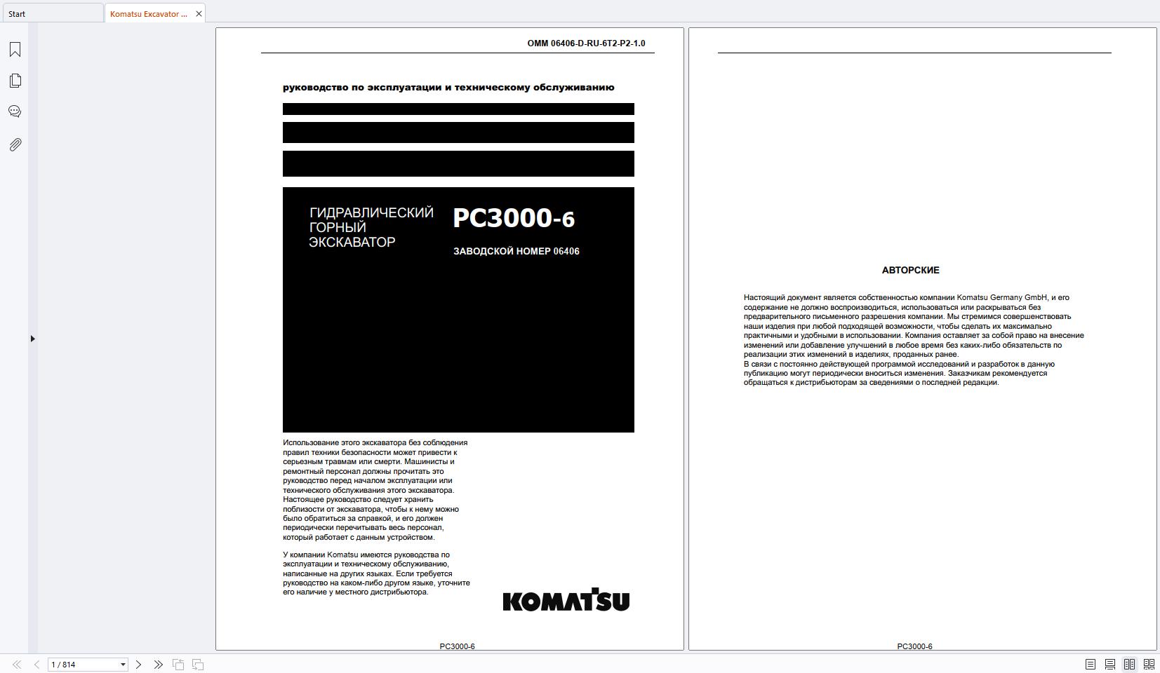 Komatsu Excavator PC3000E-6 Operation And Maintenance Manual OMM 06406-D-RU-6T2-P1-1.0 RU PDF