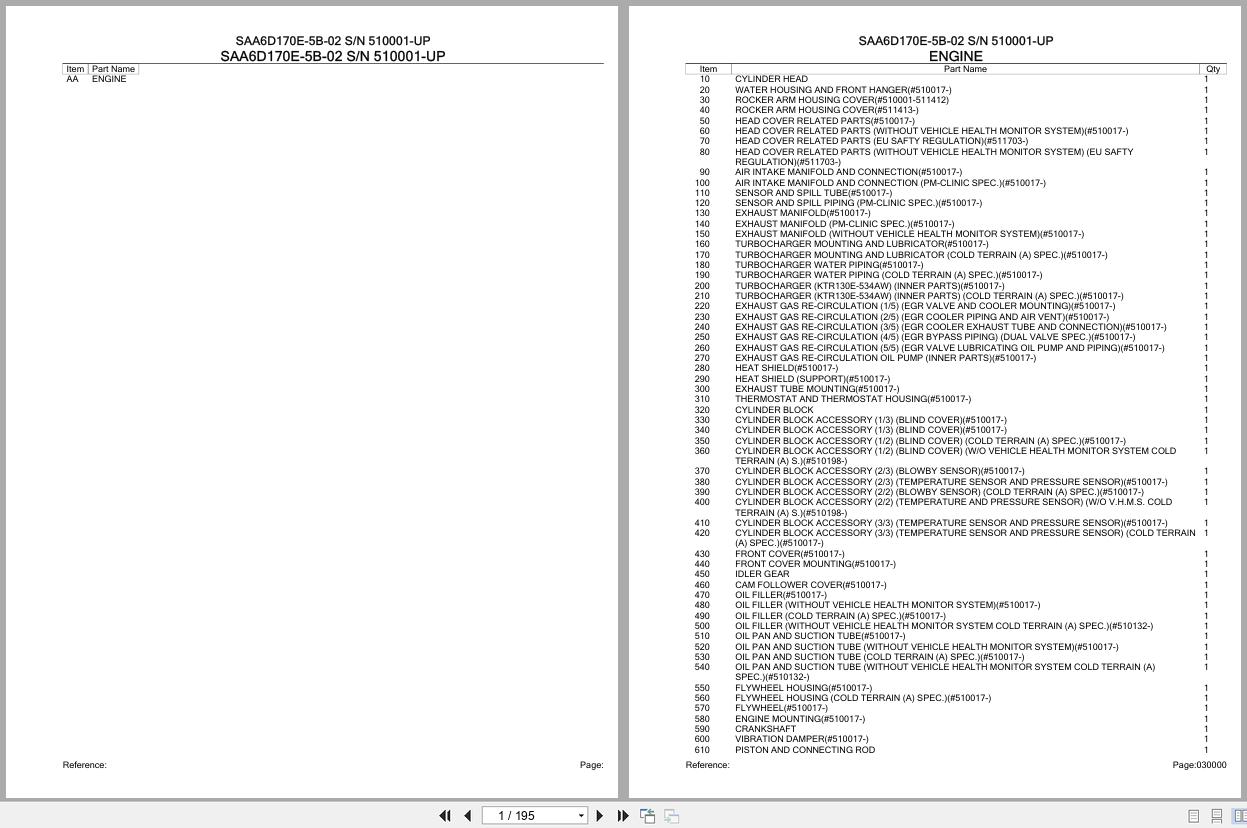Komatsu SAA6D170E-5B-02 510001-UP Engine Parts Catalog PDF