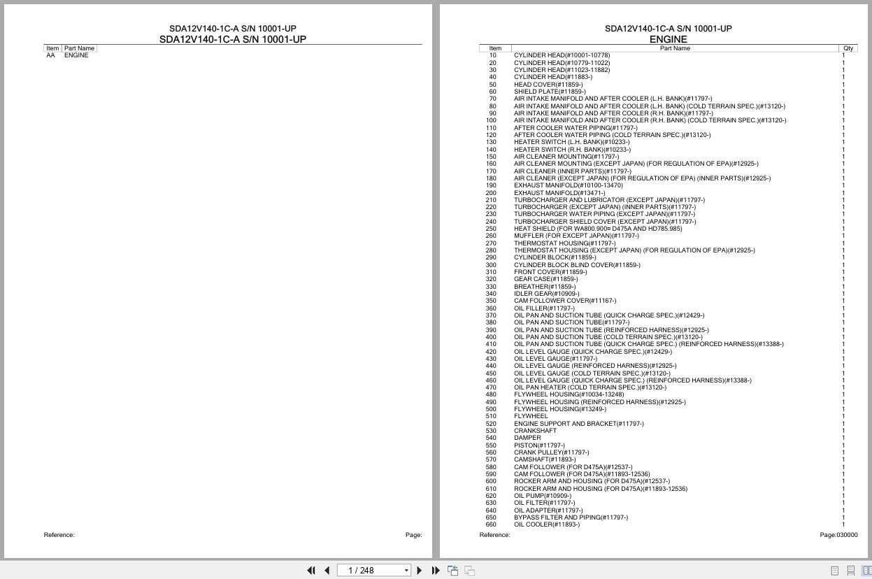 Komatsu SDA12V140-1C-A 10001-UP Engine Parts Catalog PDF