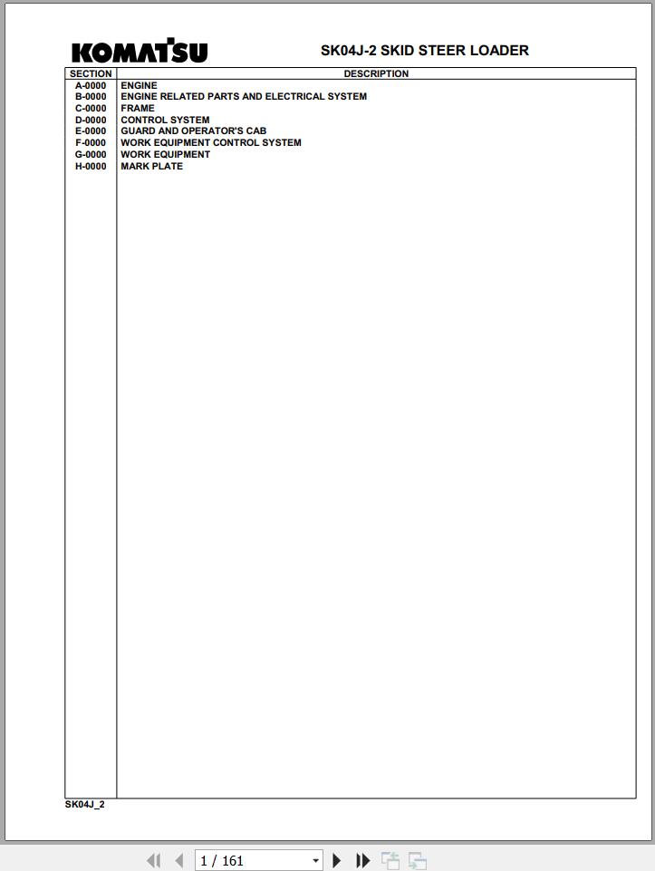 The Bookmarks of Komatsu SK04J-2 SK04JF20001 Up Spare Parts Catalog: