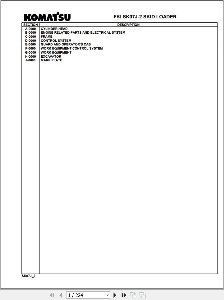 The Bookmarks of Komatsu SK07J-2 SK07JF20001 Up Spare Parts Catalog: