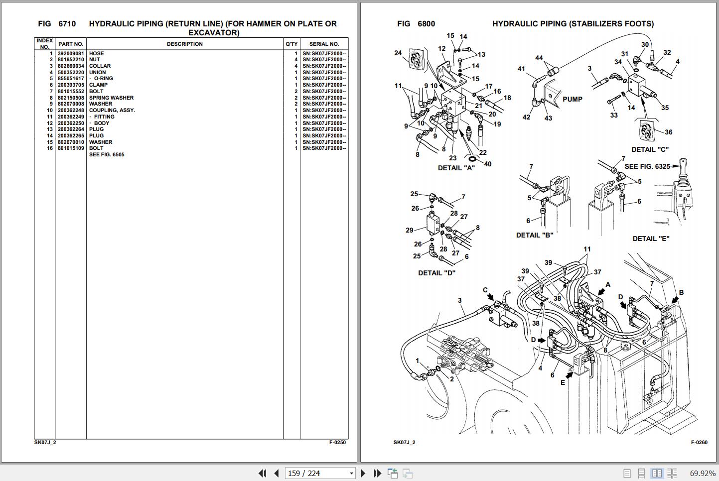 Komatsu SK07J-2 SK07JF20001 Up Spare Parts Catalog