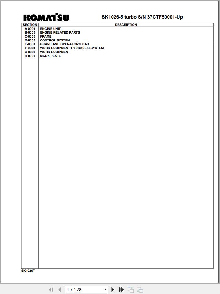 The Bookmarks of Komatsu SK1026-5 turbo 37CTF50001 Up Spare Parts Catalog: