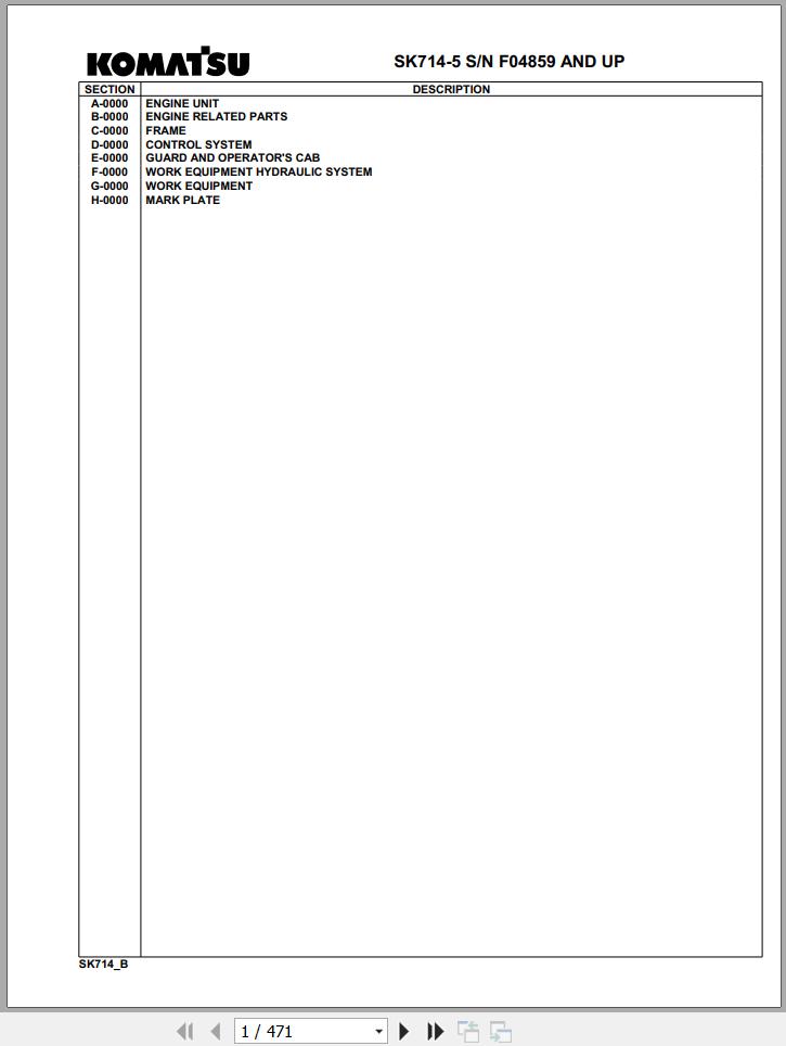 Komatsu SK714-5 F04859 And Up Spare Parts Catalog