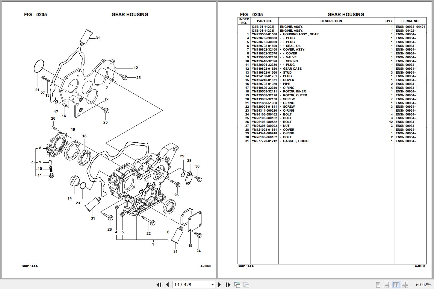 Komatsu SK815-5 turbo USA 37BTF00224 Up Spare Parst Catalog