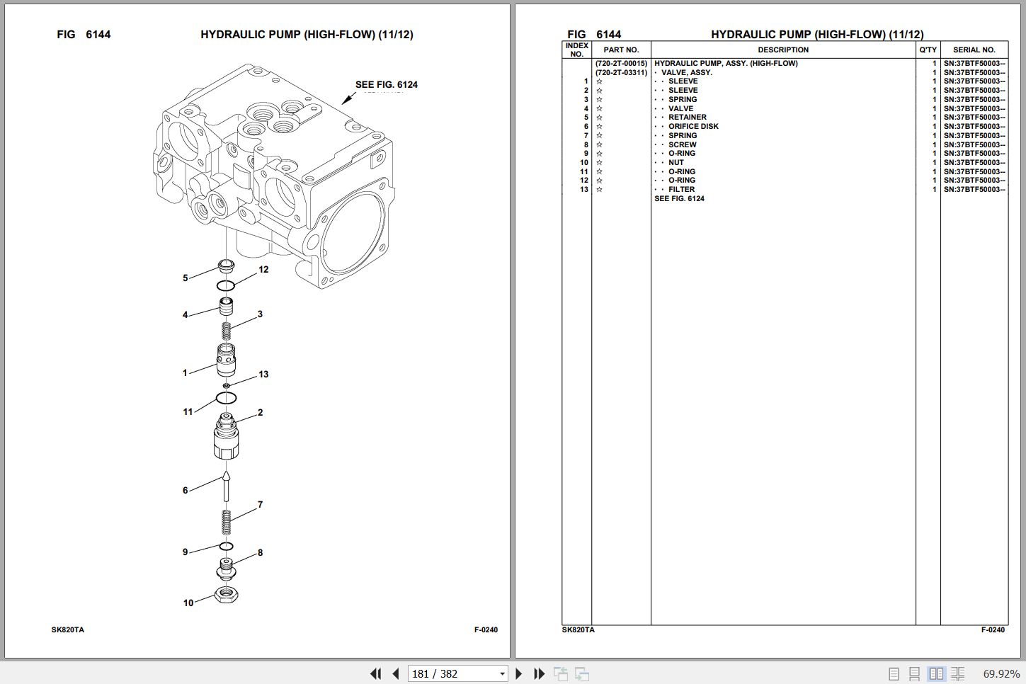 Komatsu SK820-5 turbo USA 37BTF5000 Up Spare Parst Catalog