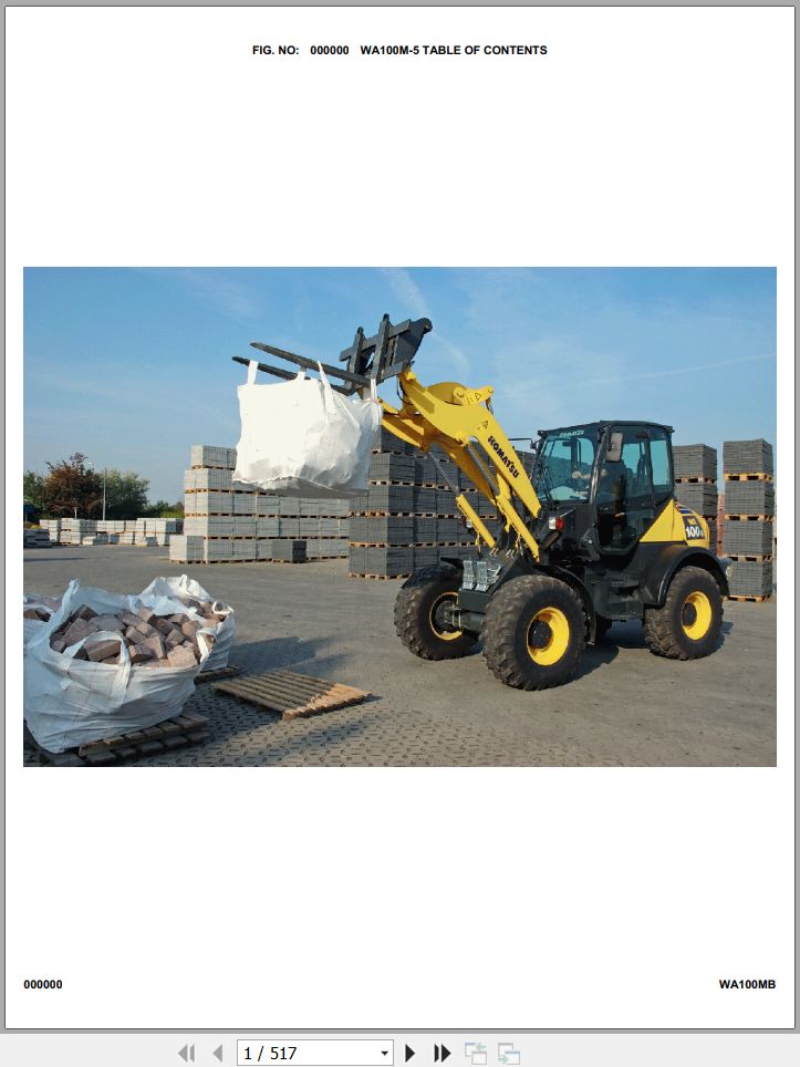 The Bookmarks of Komatsu WA100M-5 30 km/h H50051 Up Spare Parts Catalog: