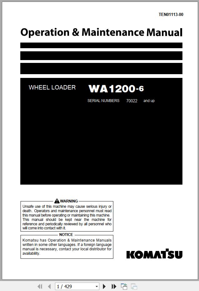 Komatsu WA1200-6 Operation & Maintenance Manual TEN01113-00