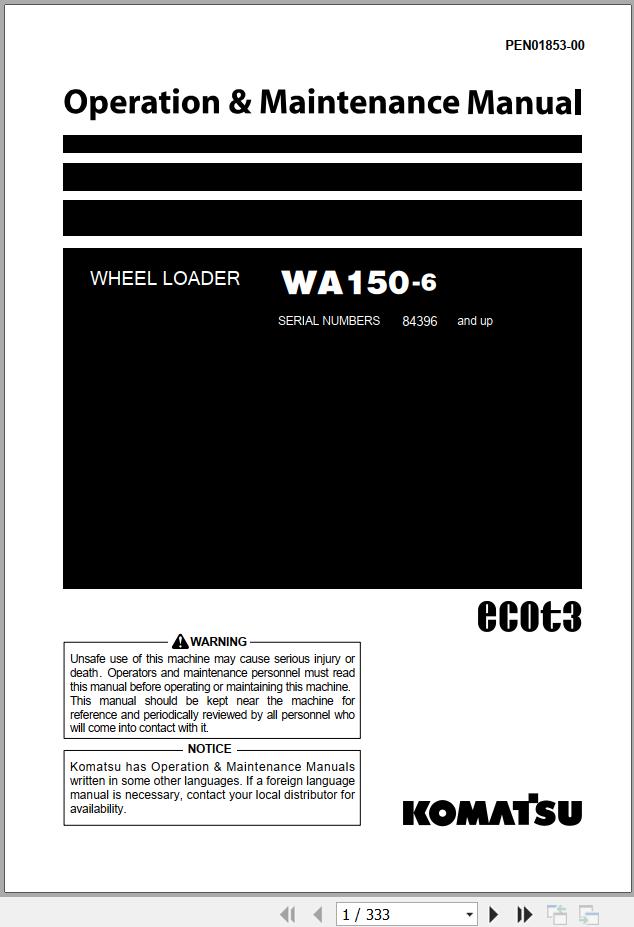 Komatsu WA150-6 Operation & Maintenance Manual PEN01853-00
