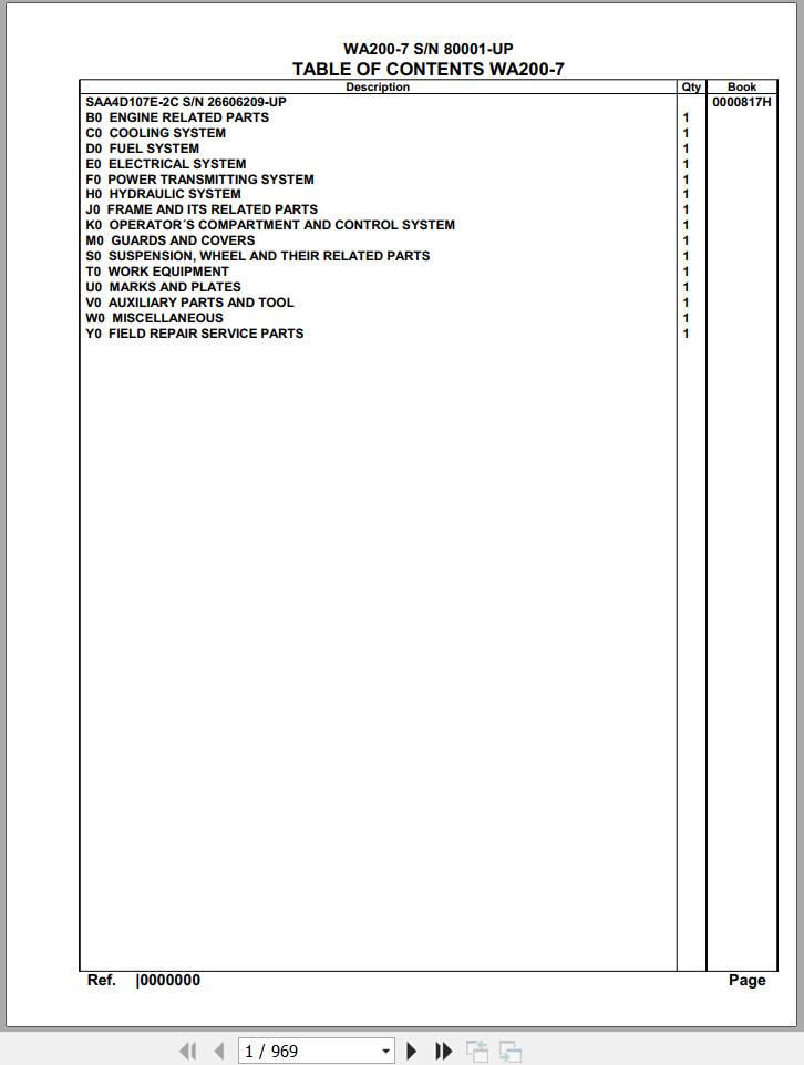The Bookmarks of Komatsu WA200-7 80001 Up Spare Parts Catalog: