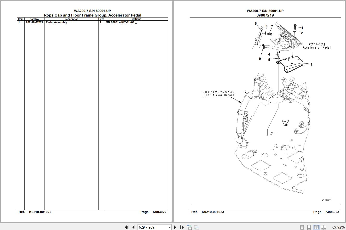 Komatsu WA200-7 80001 Up Spare Parts Catalog
