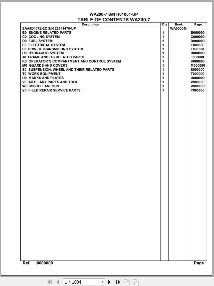 Komatsu WA200-7 H01051 Up Spare Parts Catalog