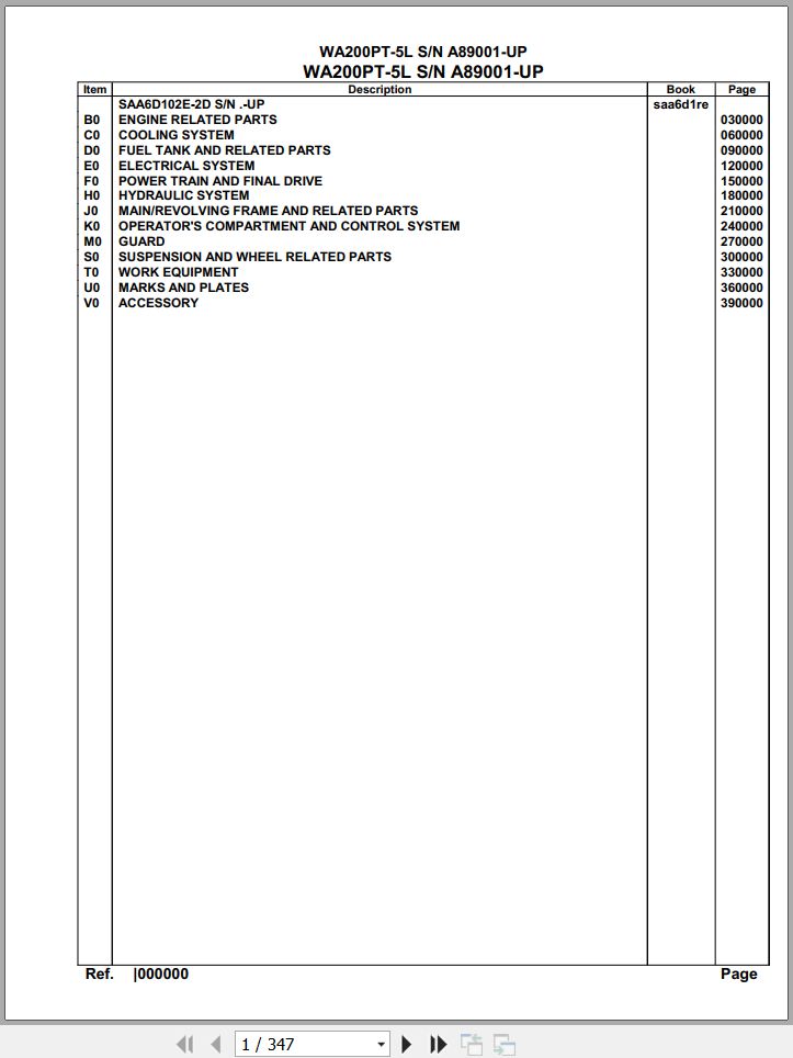 The Bookmarks of Komatsu WA200PT-5L A89001 Up Spare Parts Catalog: