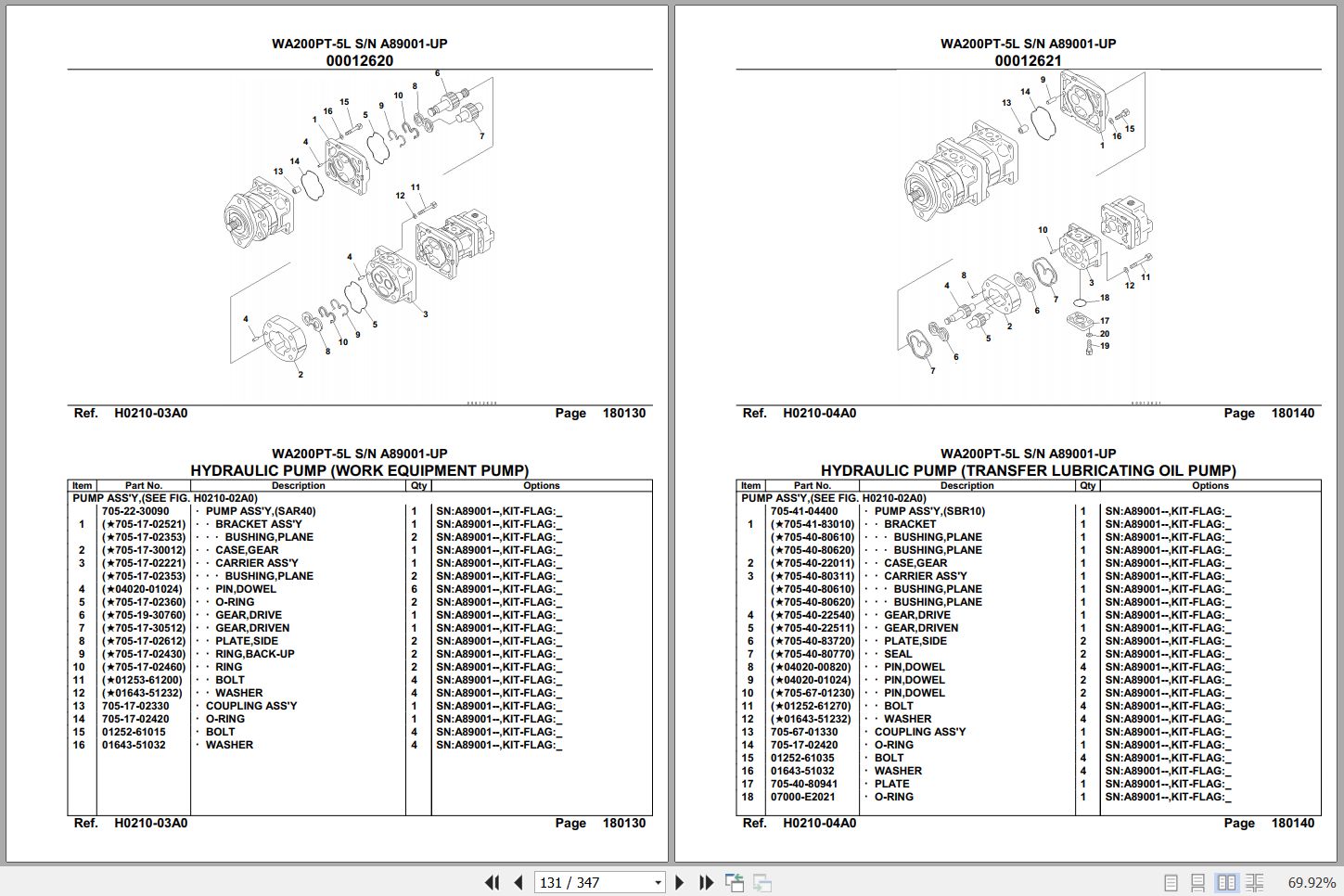Komatsu WA200PT-5L A89001 Up Spare Parts Catalog