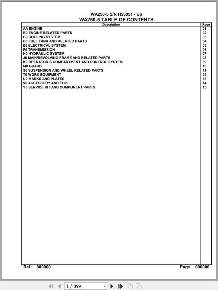 The Bookmarks of Komatsu WA250-5 H50051 Up Spare Parts Catalog: