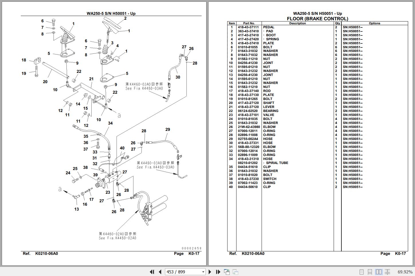 Komatsu WA250-5 H50051 Up Spare Parts Catalog