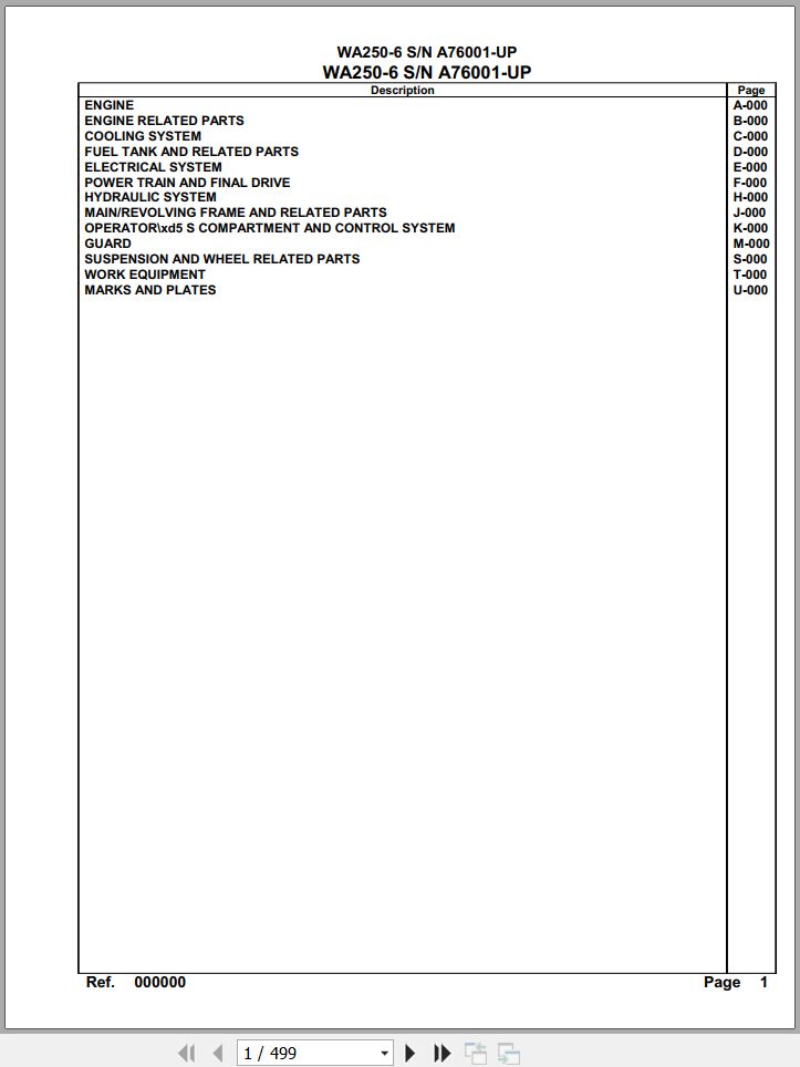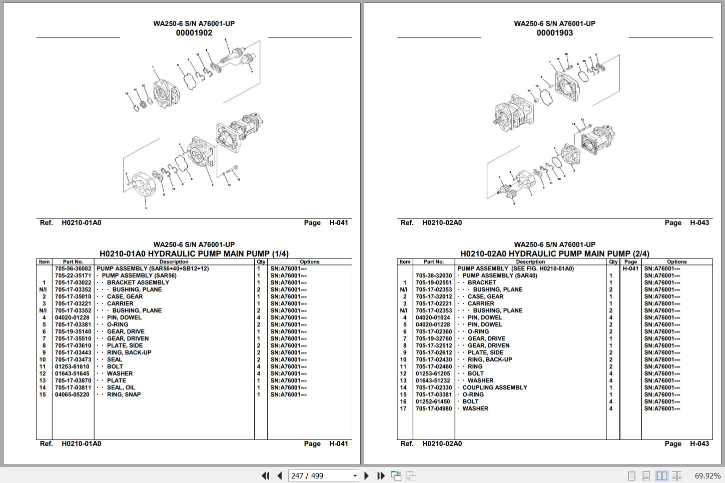 Komatsu WA250-6 A76001 Up Spare Parts Catalog
