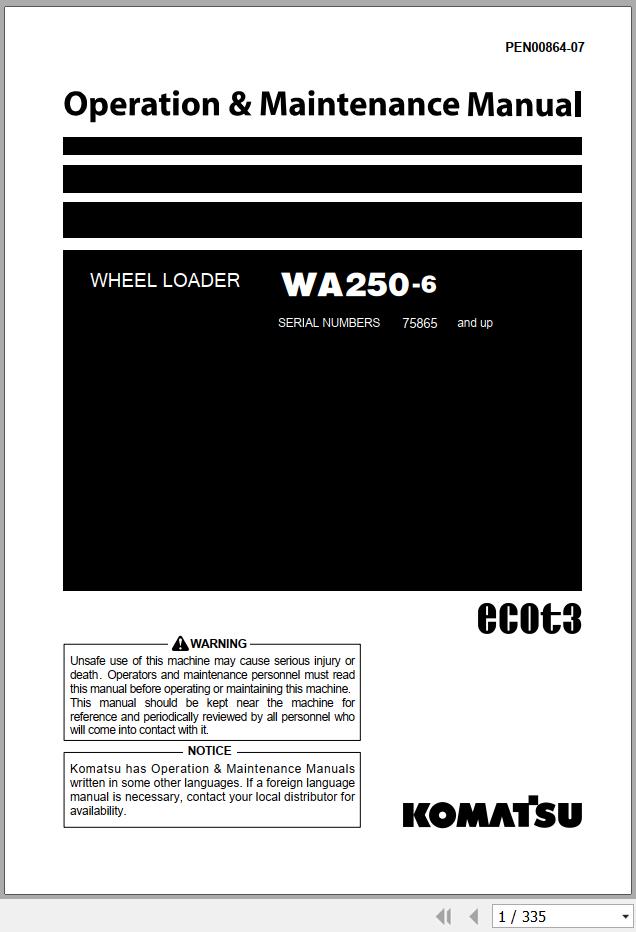 Komatsu WA250-6 Operation & Maintenance Manual PEN00864-07