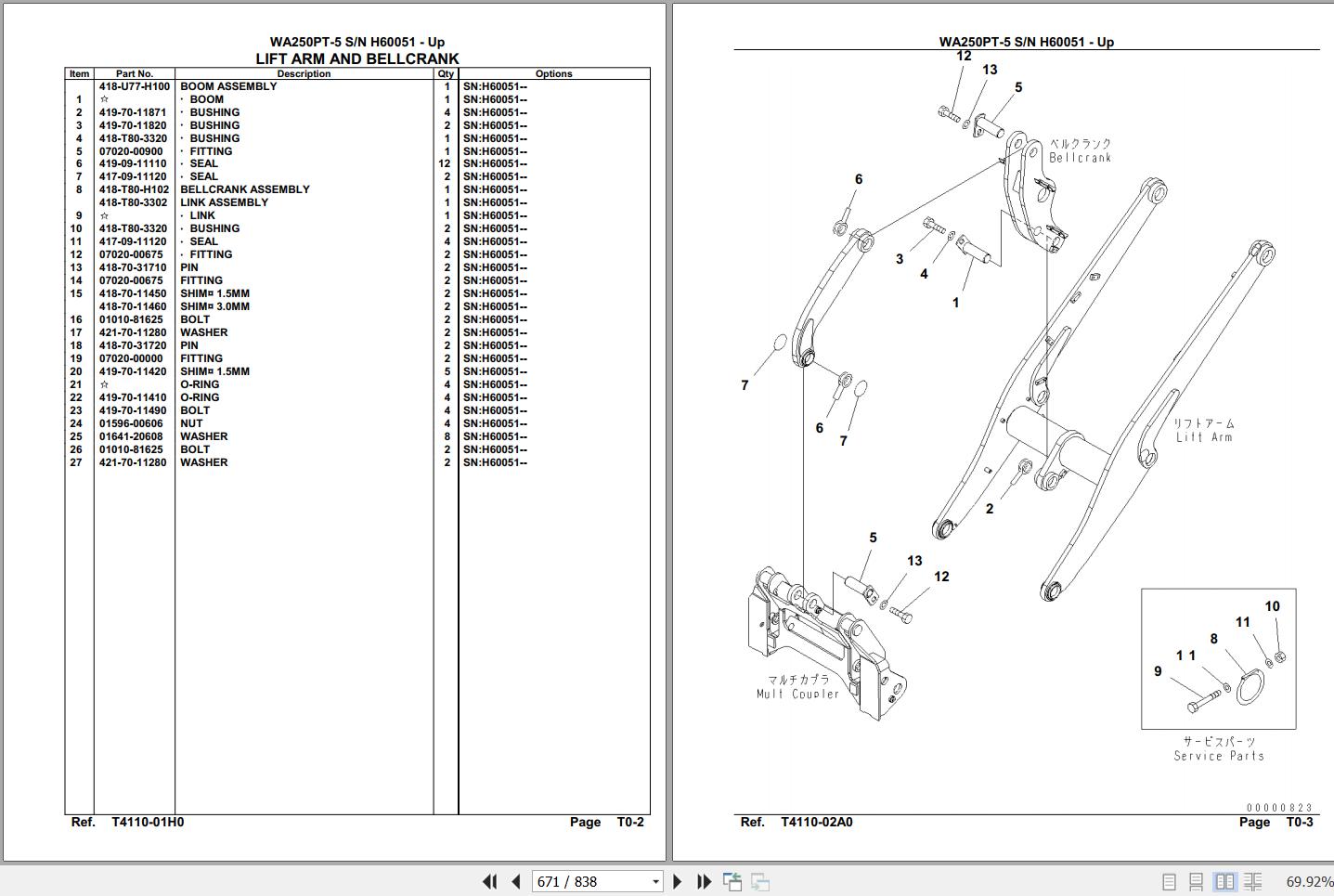 Komatsu WA250PT-5 H60051 Up Spare Parts Catalog