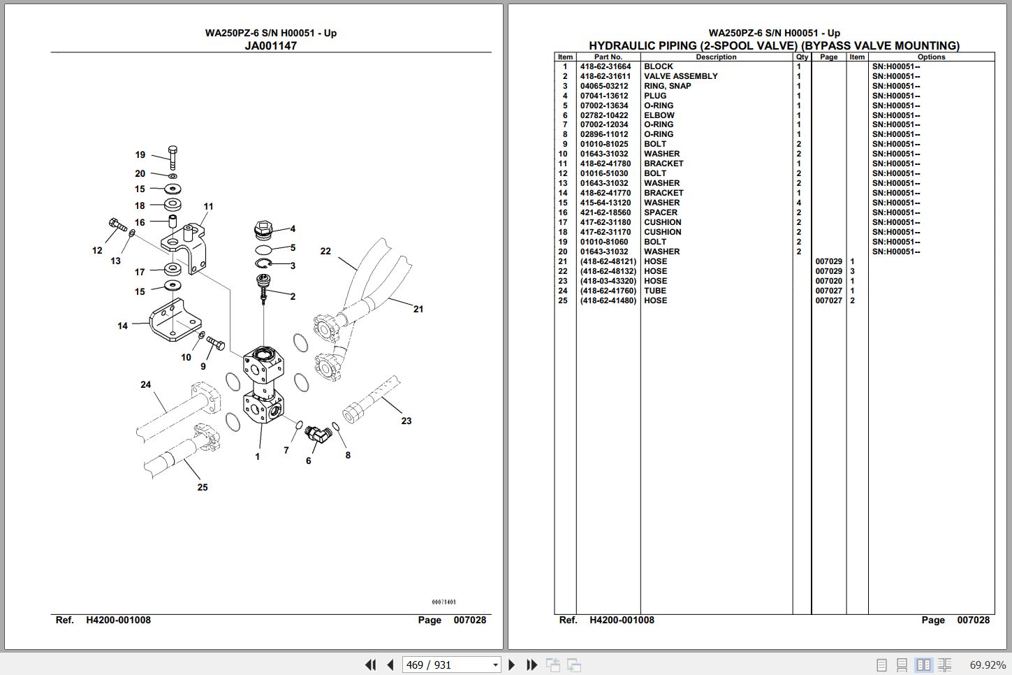 Komatsu WA250PZ-6 H00051 Up Spare Parts Catalog