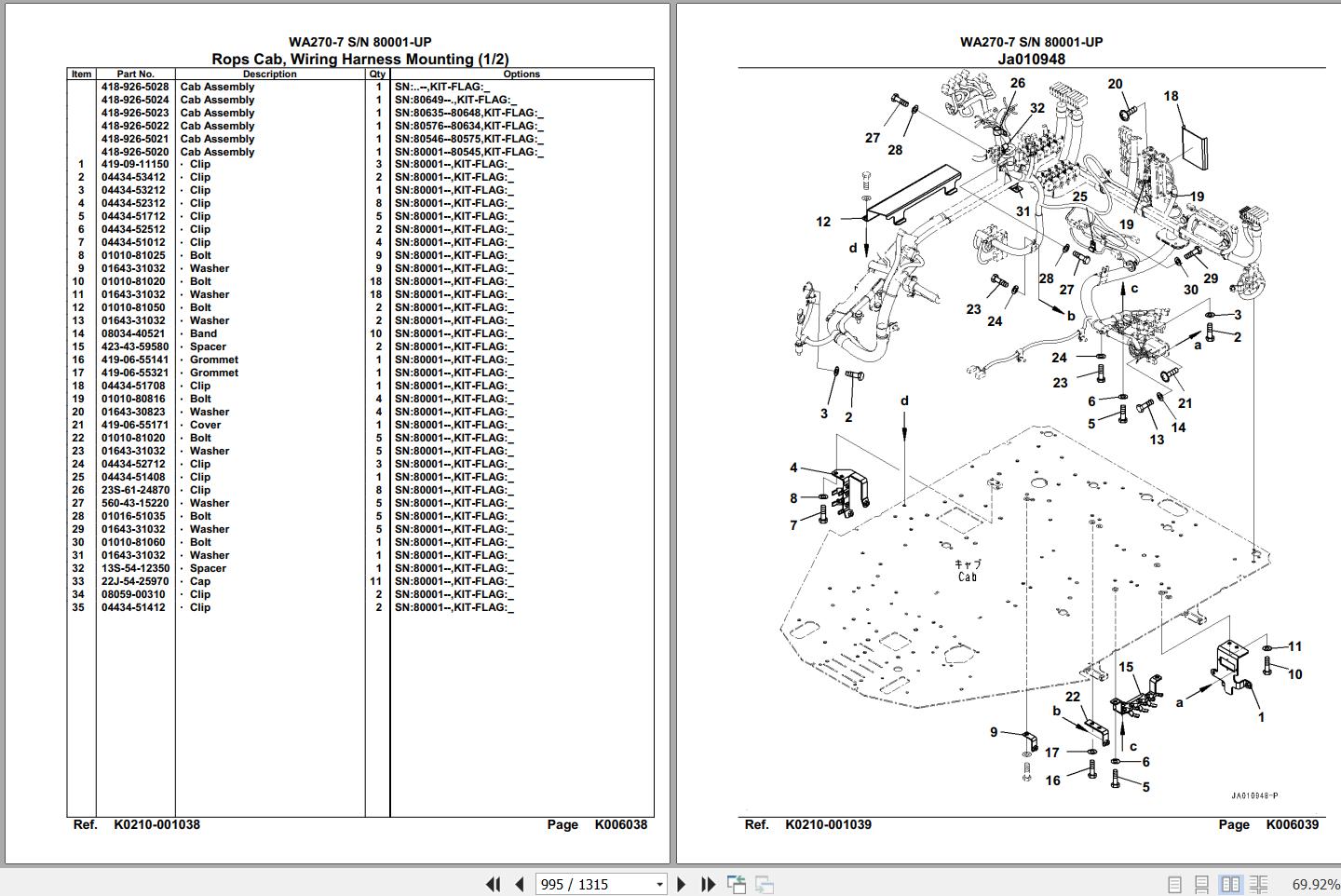 Komatsu WA270-7 80001 Up Spare Parts Catalog