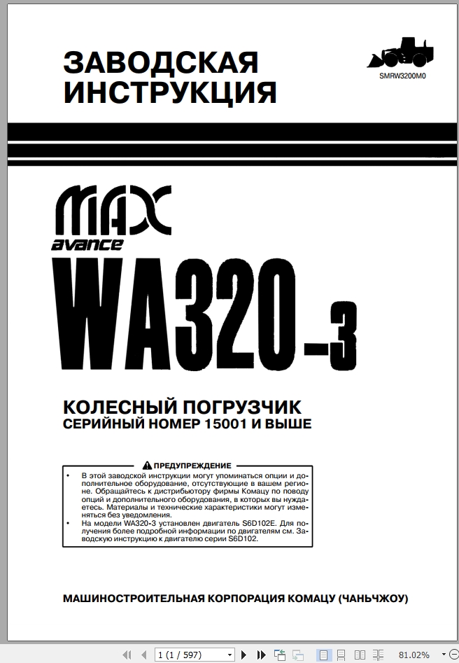 Komatsu WA320-3 Shop Manual SMRW3200M0