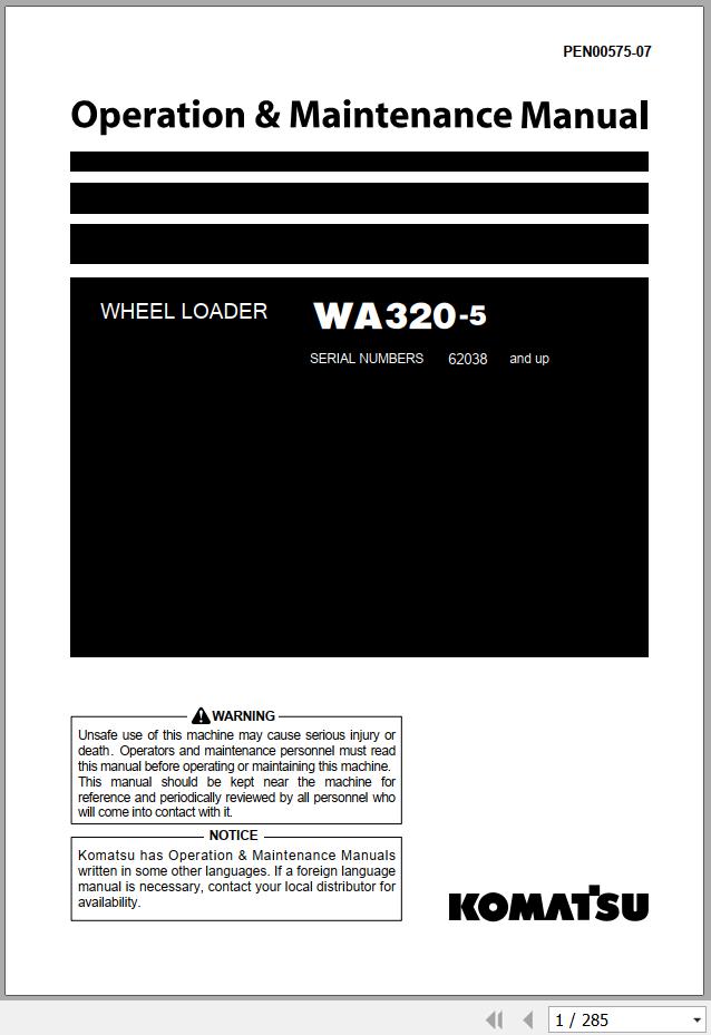 Komatsu WA320-5 Operation & Maintenance Manual PEN00575-07