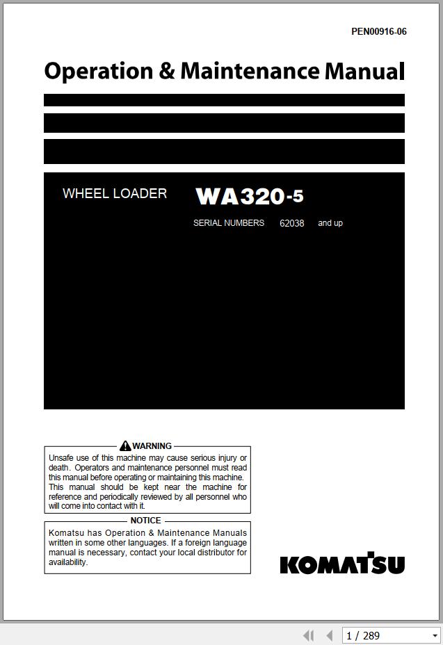 Komatsu WA320-5 Operation & Maintenance Manual PEN00916-06