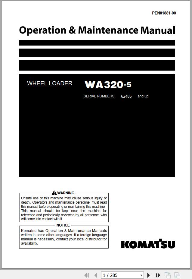 Komatsu WA320-5 Operation & Maintenance Manual PEN01881-00