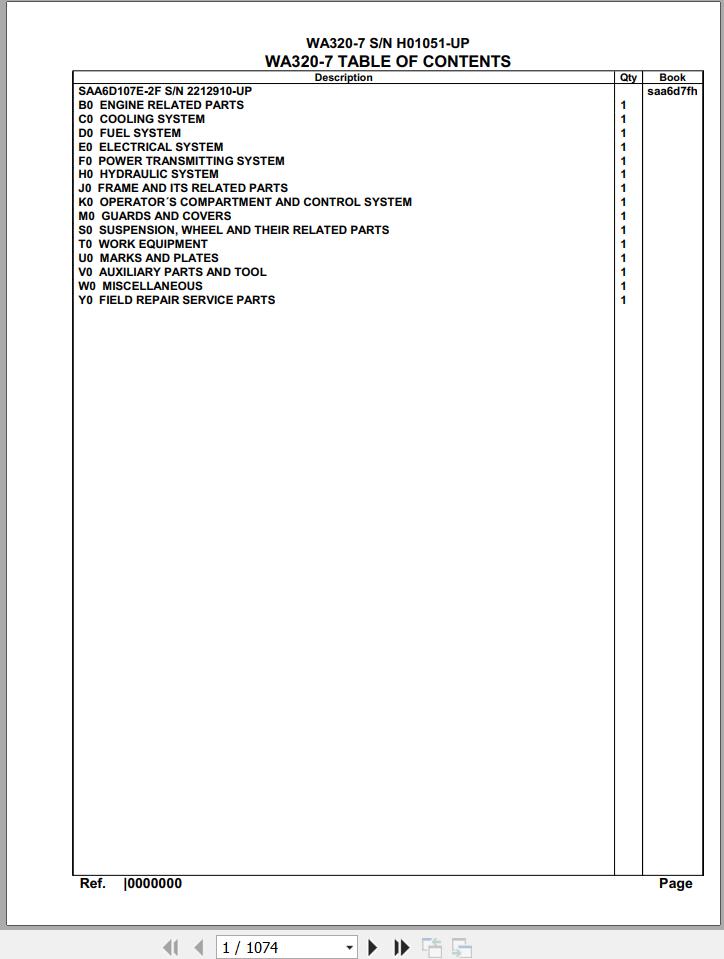 Komatsu WA320-7 H01051 Up Spare Parts Catalog