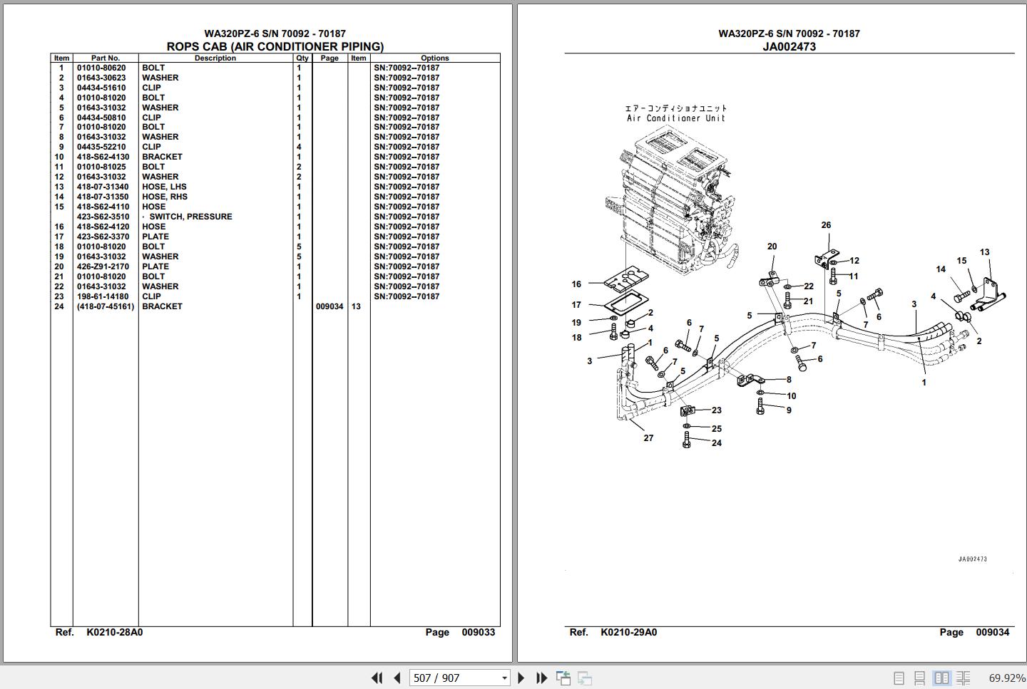 Komatsu WA320PZ-6 70092-70187 Spare Parts Catalog