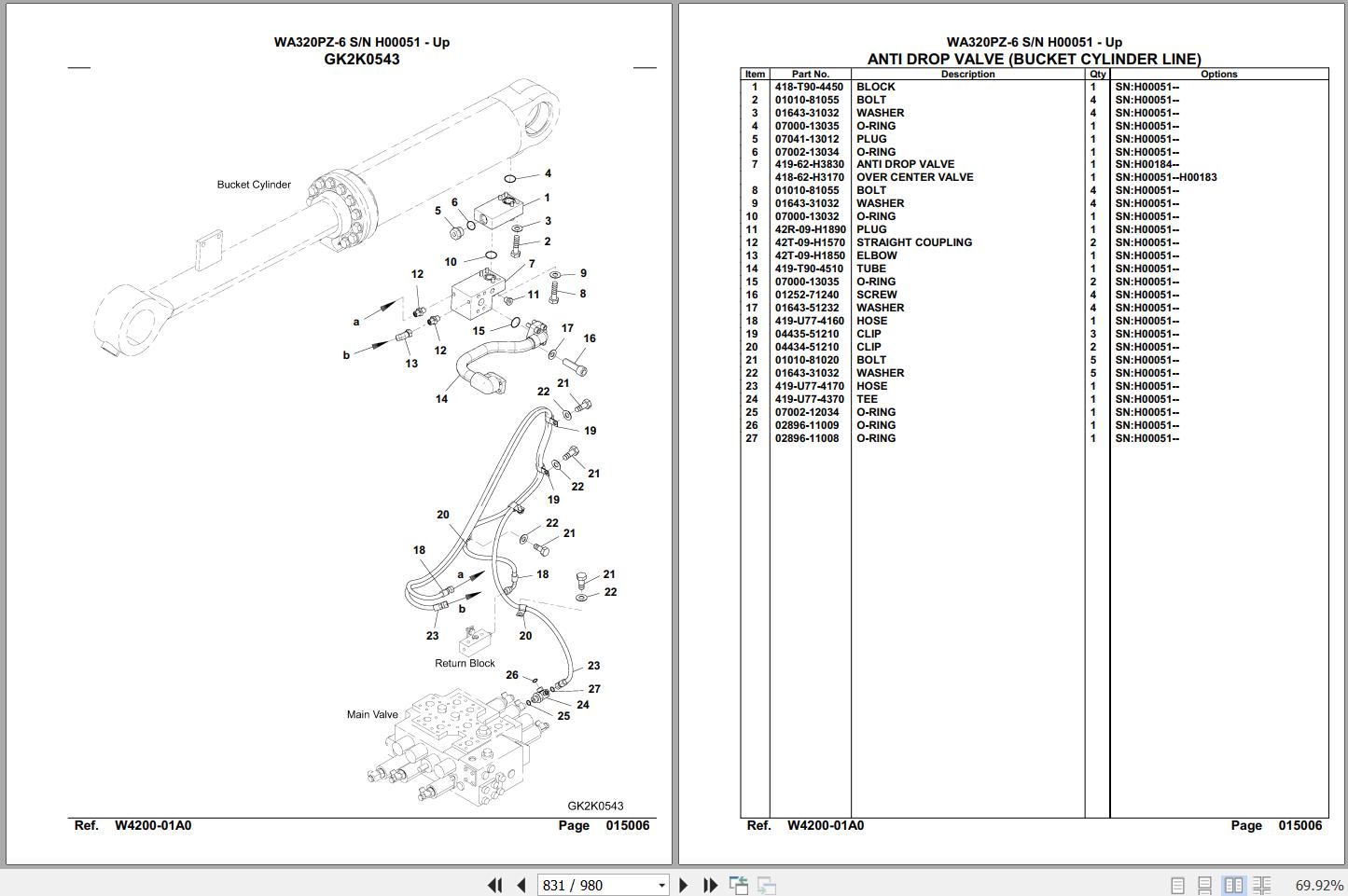 Komatsu WA320PZ-6 H00051 Up Spare Parts Catalog