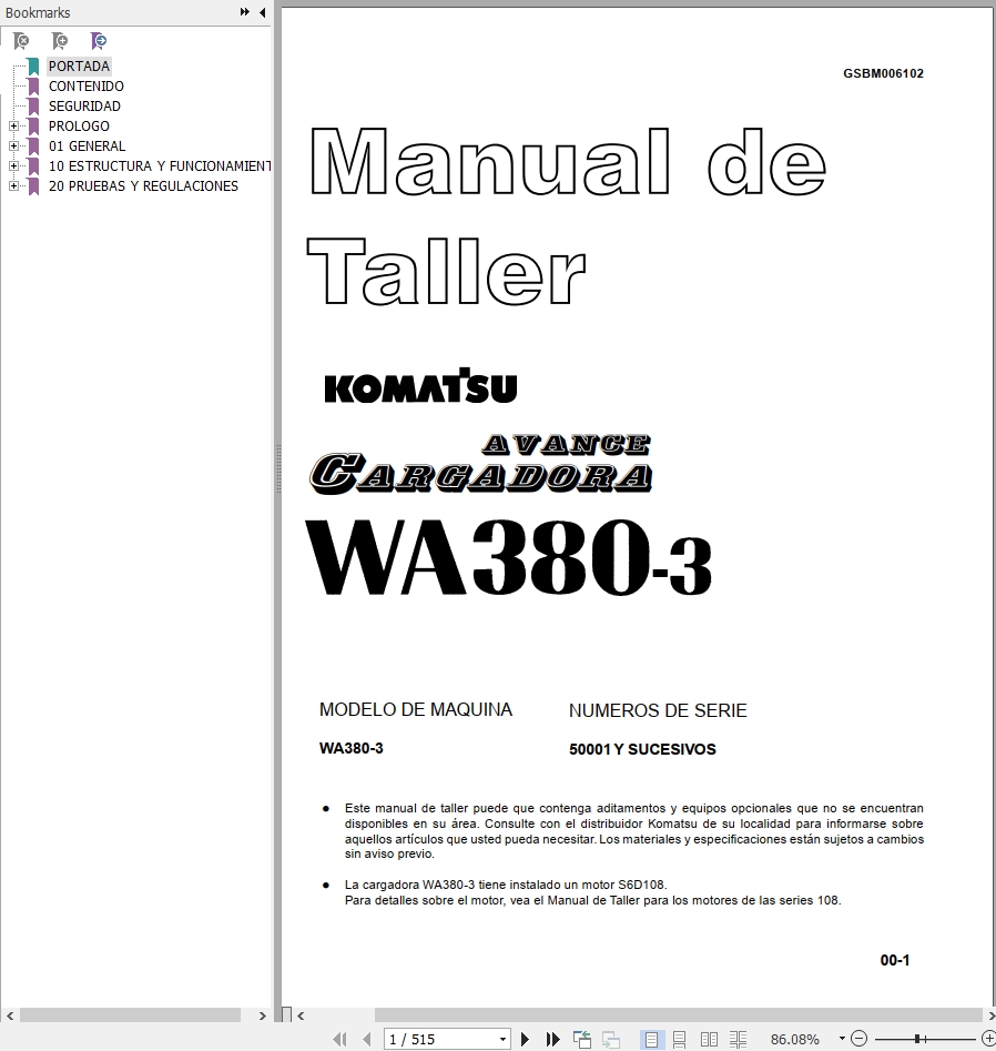 The Bookmarks of Komatsu WA380-3 Cargadora Sobre Ruedas Manual de Taller: