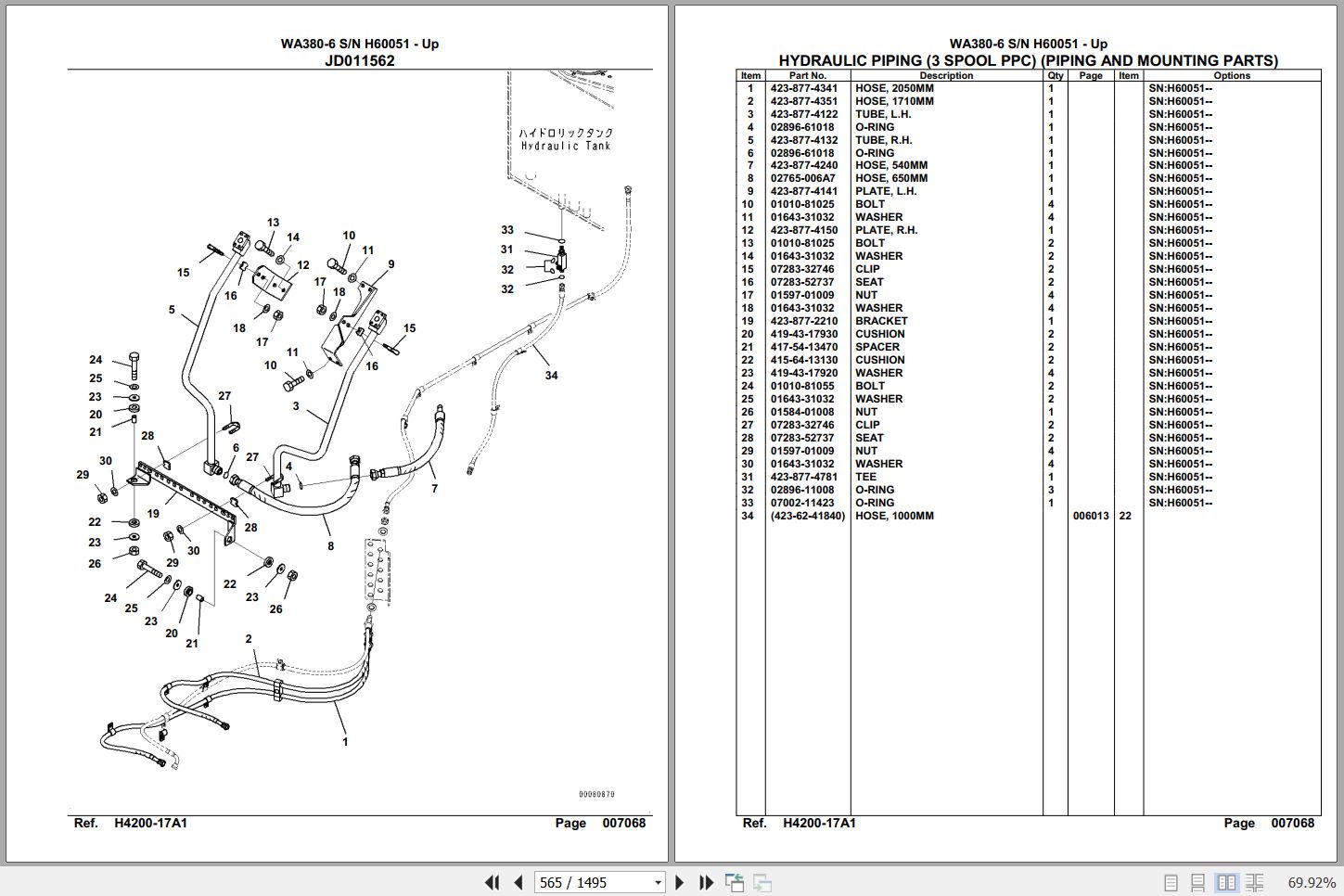 Komatsu WA380-6 H60051 Up Spare Parts Catalog