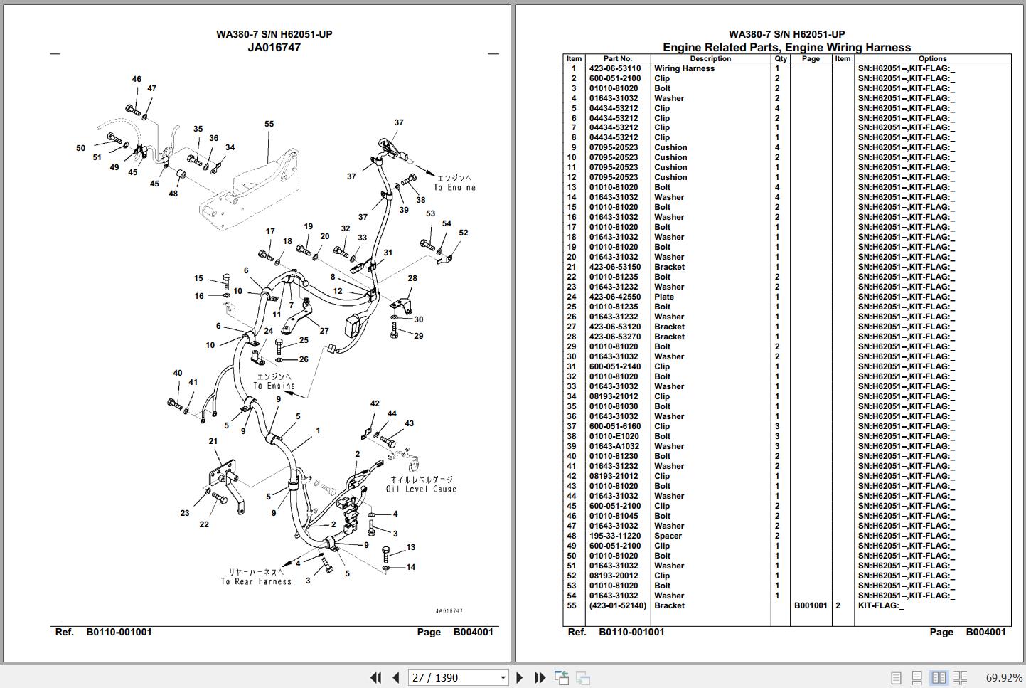 Komatsu WA380-7 H62051 Up Spare Parts Catalog