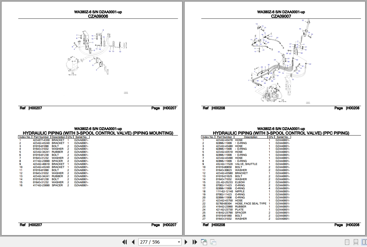 Komatsu WA380Z-6 DZAA0001 Up Spare Parts Catalog